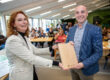 Foto: Djorn Noordman (links, lid kernteam NPB) overhandigd het NPB-plankje aan Ralph Mens (rechts, hoofdredacteur bij Stichting Hortipoint).